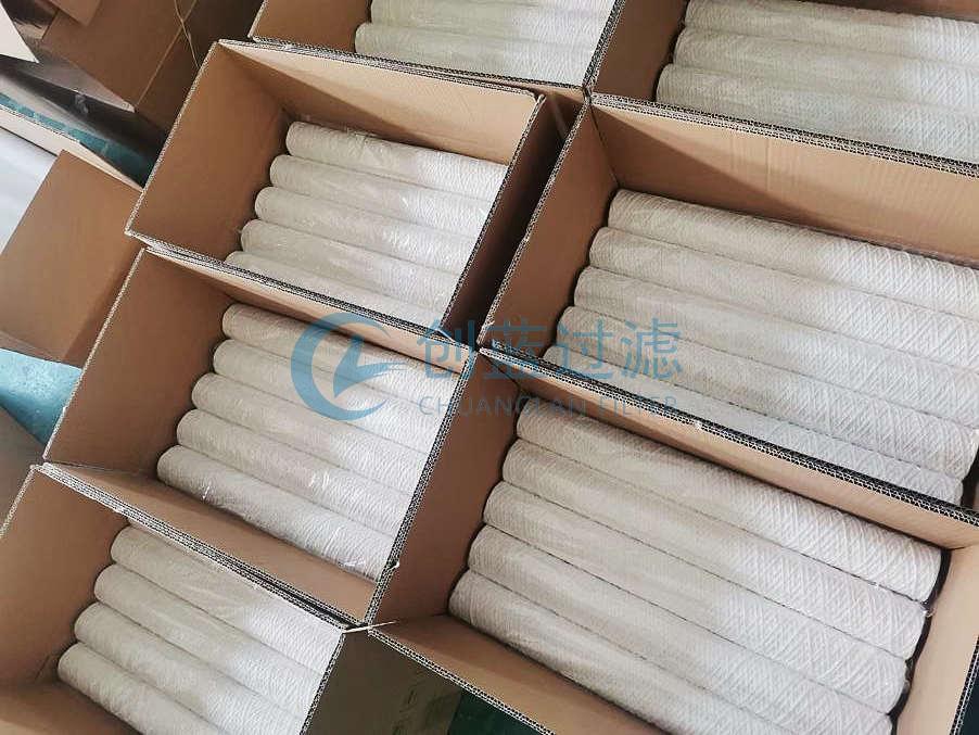 20英寸222接頭脫脂棉線線繞濾芯經過線繞設備將脫脂棉線纏繞在不銹鋼內骨架上面,由設備調整不同的花紋密度來達到相應的過濾精度;在機械纏繞過程中花紋由密集到疏松實現外疏里密的物理結構使得濾芯納污量更高,不銹鋼骨架承壓能力更強。
